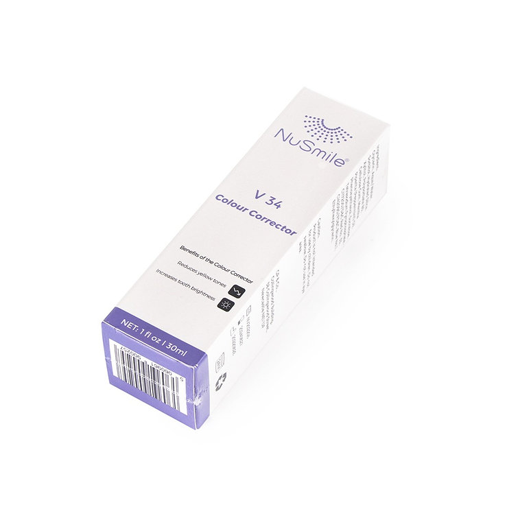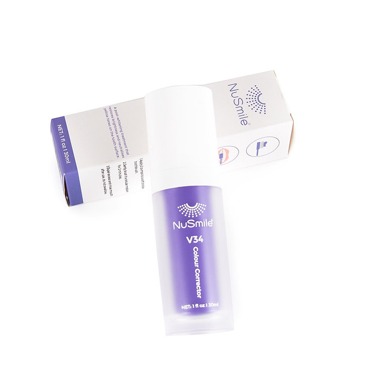 NuSmile V34 works to brighten teeth by utilising colour correcting technology. By counter-balancing the different hues in your teeth, NuSmile V34 Gel conceals stains and improves brightness.