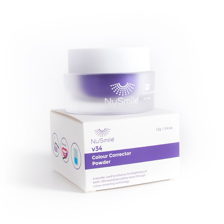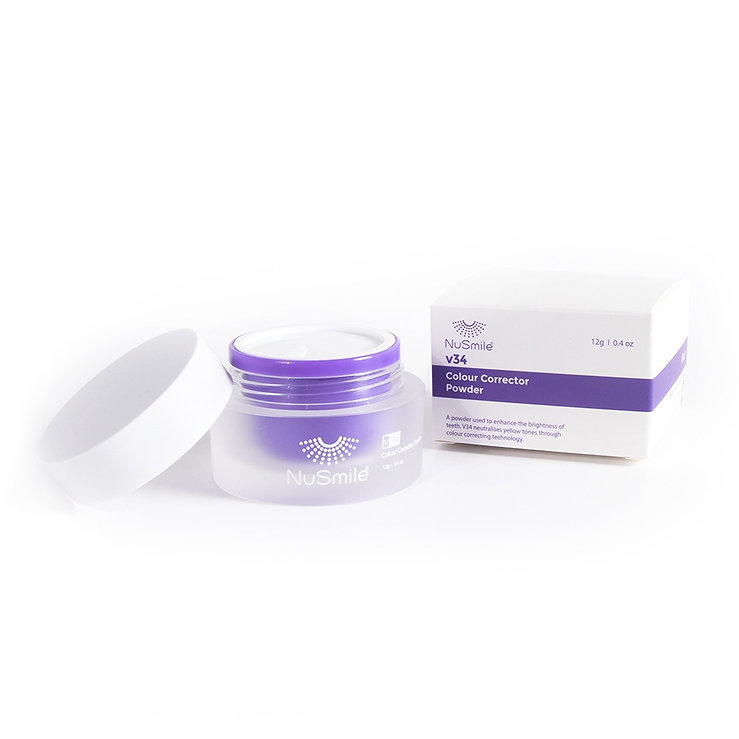 Simply dip your toothbrush into the powder and brush away, the V34 powder will conceal and neutralise stains leaving you with a whiter and brighter appearing smile!